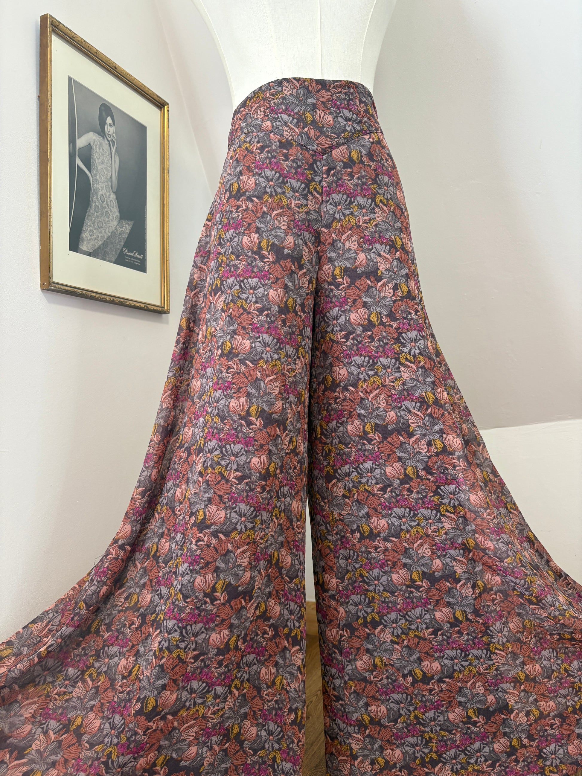 1960’s Autumnal Palazzo Trousers, made from a mesh/nylon fabric, and lined with a polyester fabric.