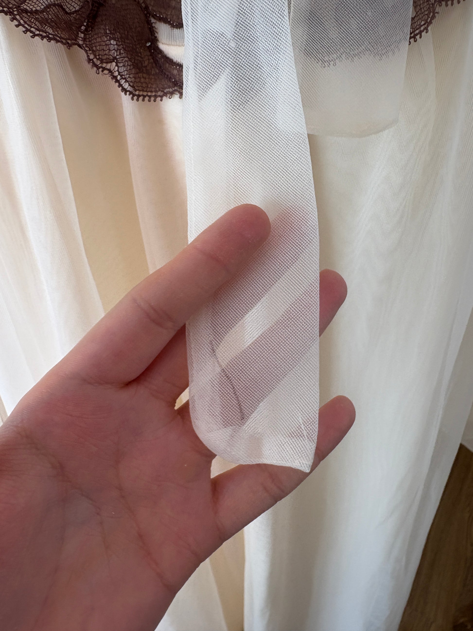 1960’s Nylon Peignoir, with huge puffed sleeves and a neck tie. In great vintage condition. Pen mark on the end of the tie.