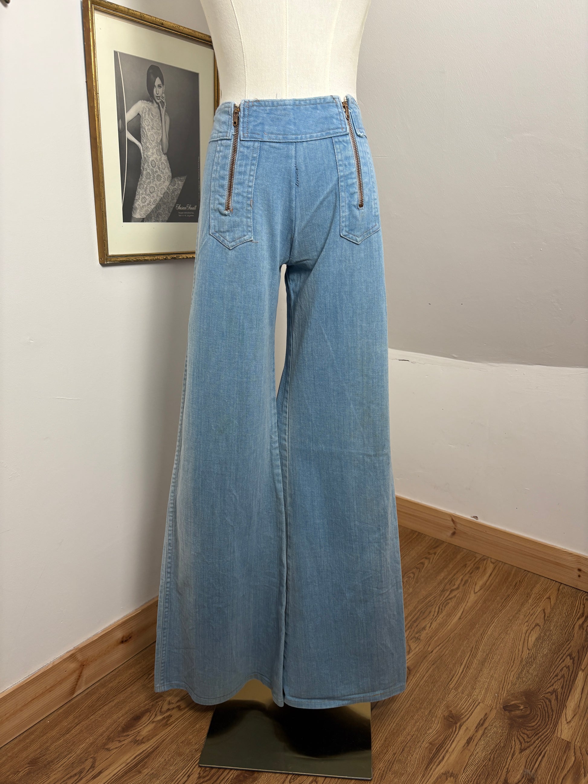1970’s Double Zip Flared Jeans, made from 100% cotton. In good vintage condition, there’s a small area on the front where there’s seams in the wrong place - does not affect the wear.