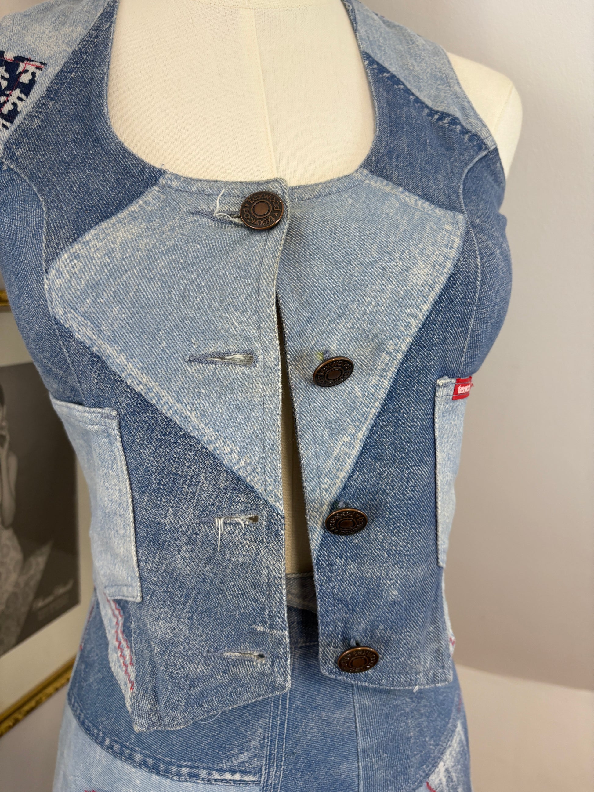 1970’s Patchwork Waistcoat & Skirt Set, made from soft corduroy denim. In great vintage condition.