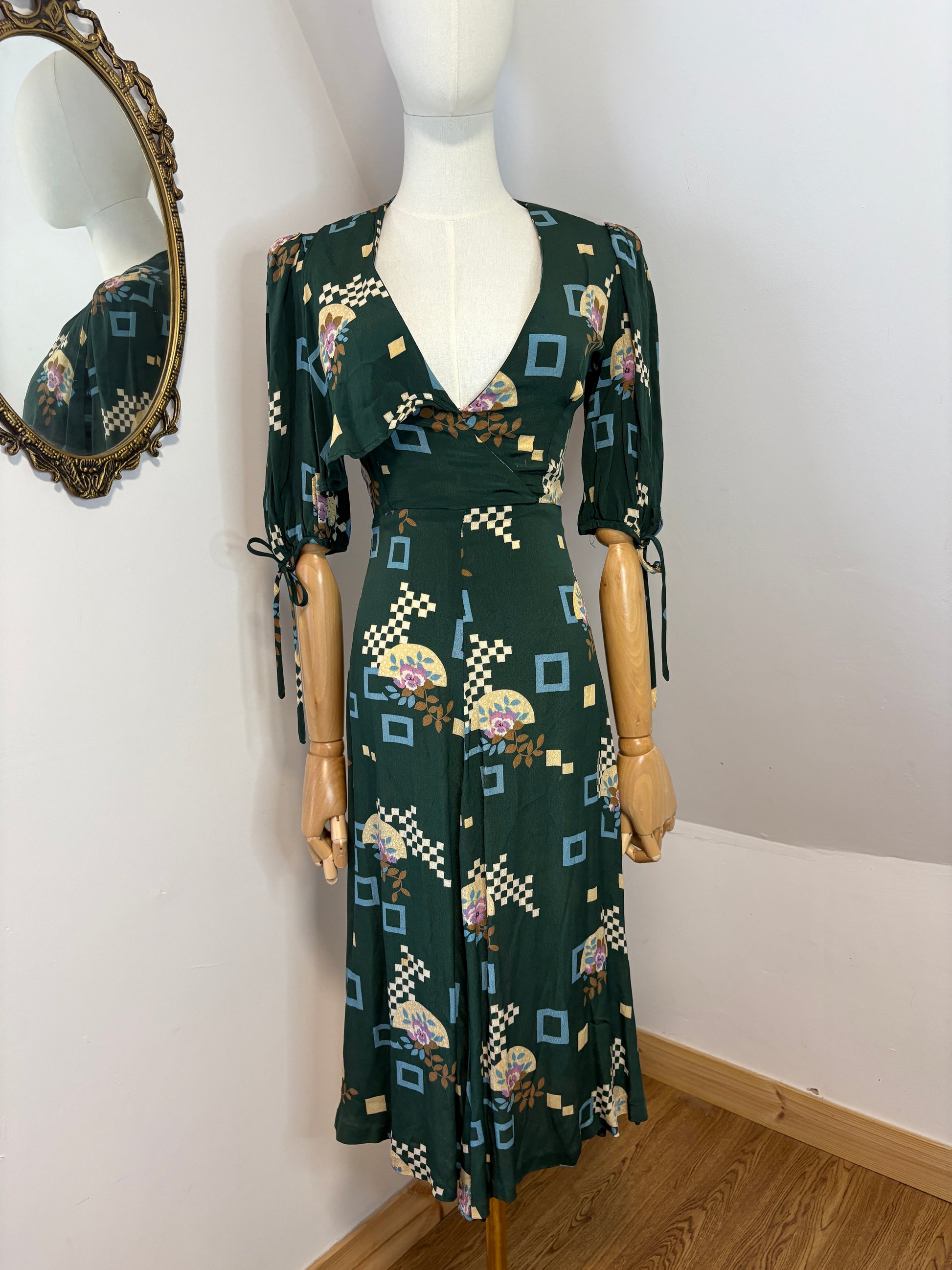 1970s Does 1930s ‘Paul Nicholas’ Crepe Art Deco Dress. Beautiful silk dress made by Paul Nicholas, known for replicating pieces from high street brands Biba and Bus Stop.